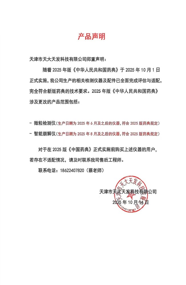 | 尊敬的各界朋友們: 歡迎您進入天津市天大天發(fā)科技有限公司的網(wǎng)站進行瀏覽,首先感謝各界朋友多年來對天大天發(fā)藥品檢測儀器和分析儀器的關(guān)心與支持! 天津市天大天發(fā)科技有限公司是通過ISO9001質(zhì)量管理體系認證、ISO14001環(huán)境管理體系的認證的高新技術(shù)企業(yè),是專業(yè)的藥檢儀器和分析儀器的制造廠商。 我們的產(chǎn)品包括藥品溶出儀系列、微粒檢測儀系列、內(nèi)毒素檢查儀系列等40余種產(chǎn)品,主要產(chǎn)品覆蓋了全國所有省區(qū),部分產(chǎn)品已進入海外市場。公司在藥檢領(lǐng)域樹立了良好的品牌形象,贏得了廣大用戶的贊譽。 公司將更好地適應瞬息萬變的市場,增強企業(yè)的核心競爭力。抓住全球經(jīng)濟飛速發(fā)展的歷史性機遇,以創(chuàng)新精神進行新的創(chuàng)業(yè)。以高起點、高速度、高效率創(chuàng)造出中國藥品檢測儀器和分析儀器領(lǐng)域中的品牌形象,立足中國,走向國際。 我們熱切希望您成為天大天發(fā)科技有限公司的合作伙伴! |